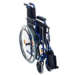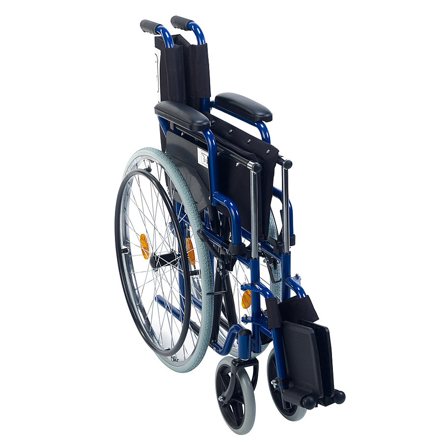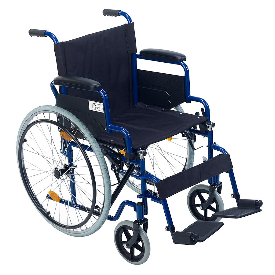 Teqler Faltrollstuhl mit robustem Gestell und diversen Verstellmöglichkeiten. Kann entweder vom Patienten selbst oder einer Begleitperson gesteuert werden. Bequemer Sitz für den Patienten durch textile Sitzfläche und Rückenlehne, gepolsterte Armauflagen und großzügige Sitzbreite. Platzsparend verstaubar, wenn zusammengeklappt.