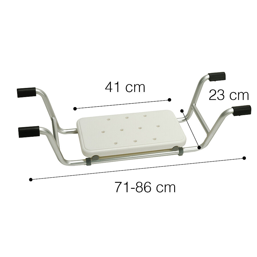 Leichter Wannensitz für Senioren mit rutschfester Sitzfläche und Gummiauflagen für einen sicheren Halt auf dem Wannenrand.