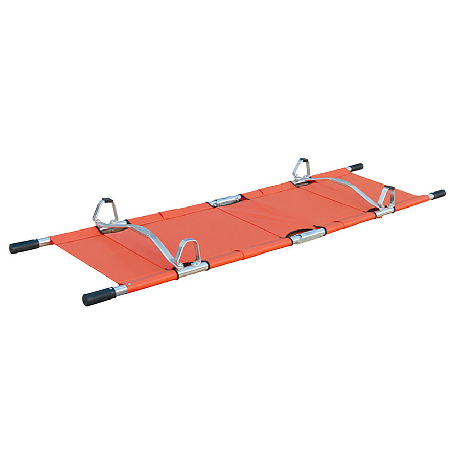 Die klappbare Patiententrage eignet sich für den Patiententransport und besteht aus einem leichten Aluminiumgestell und einer robusten PVC-Liegefläche mit zwei Sicherheitsgurten. Dank der Tragegurte kann der Patient zuverlässig gesichert werden. Für die Aufbewahrung kann die Patiententrage dank des Klappmechanismus in der Mitte gefaltet und in der dafür vorgesehenen Tragetasche platzsparend aufbewahrt werden. Zusammengeklappt benötigt die Notfalltrage nur wenig Platz und kann sehr gut in Erste Hilfe Schränken oder Fahrzeugen verstaut werden.