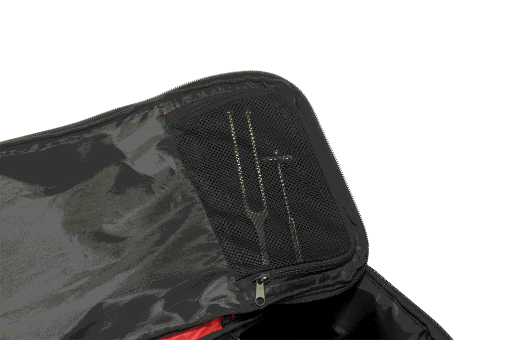 - Zwei Reißverschluss-Netztaschen in der Deckelinnenseite