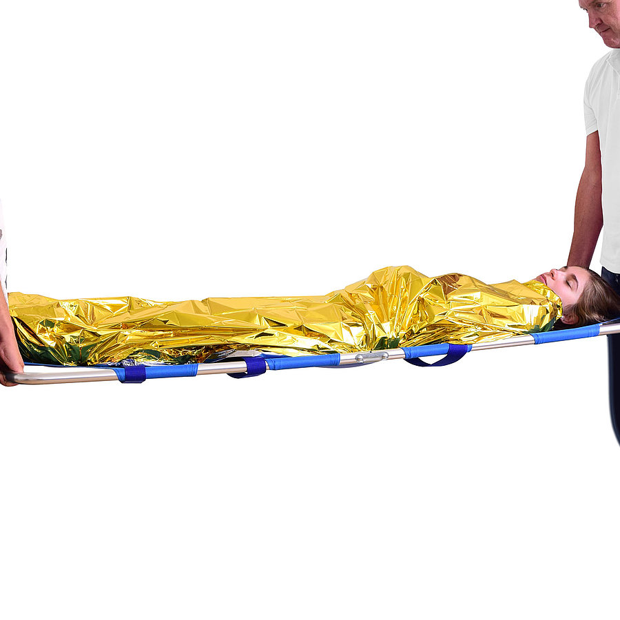 Die Rettungsdecke ist mit einer silbernen und einer goldenen Seite ausgestattet und kann dadurch je nach Bedarf als Schutz vor Auskühlung oder als Hitzeschutz eingesetzt werden. Zum Schutz vor Kälte wird der Patient mit der silbernen Seite innenliegend eingewickelt. Als Hitzeschutz wird die Folie mit der silbernen Seite nach außen locker über den Patienten gelegt. Durch ihre geringe Größe und ihr geringes Gewicht lässt sich die Rettungsdecke ideal in jeder Notfalltasche und in jedem Notfallkoffer unterbringen.