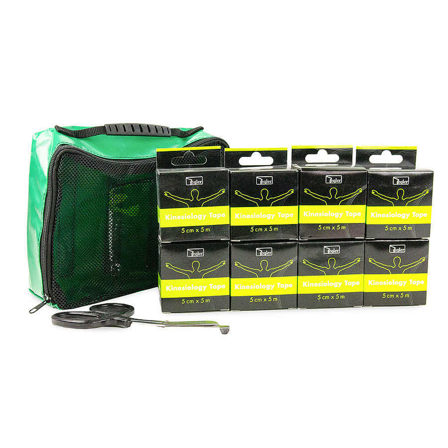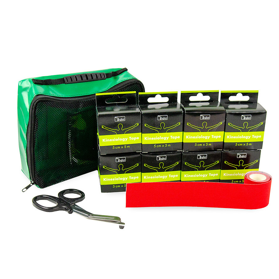 Das Sport-Pack besteht aus insgesamt sechs Rollen Kinesiologie-Tape sowie einer Universalschere und einer Modultasche. Das Tape kann individuell auf die passende Größe zugeschnitten werden und bietet somit eine wirtschaftliche Anwendung.