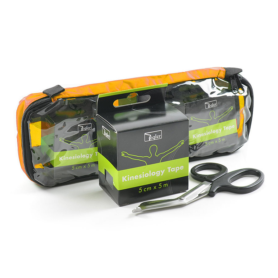 Das Kinesiologietape aus latexfreiem Baumwollstoff ist mit einem Acrylkleber versehen und daher besonders hautverträglich. Das Set besteht aus drei unterschiedlich farbigen Rollen Kinesiologie-Tape, einer Universalschere sowie einer Nylontasche und eignet sich ideal für den mobilen Einsatz.
