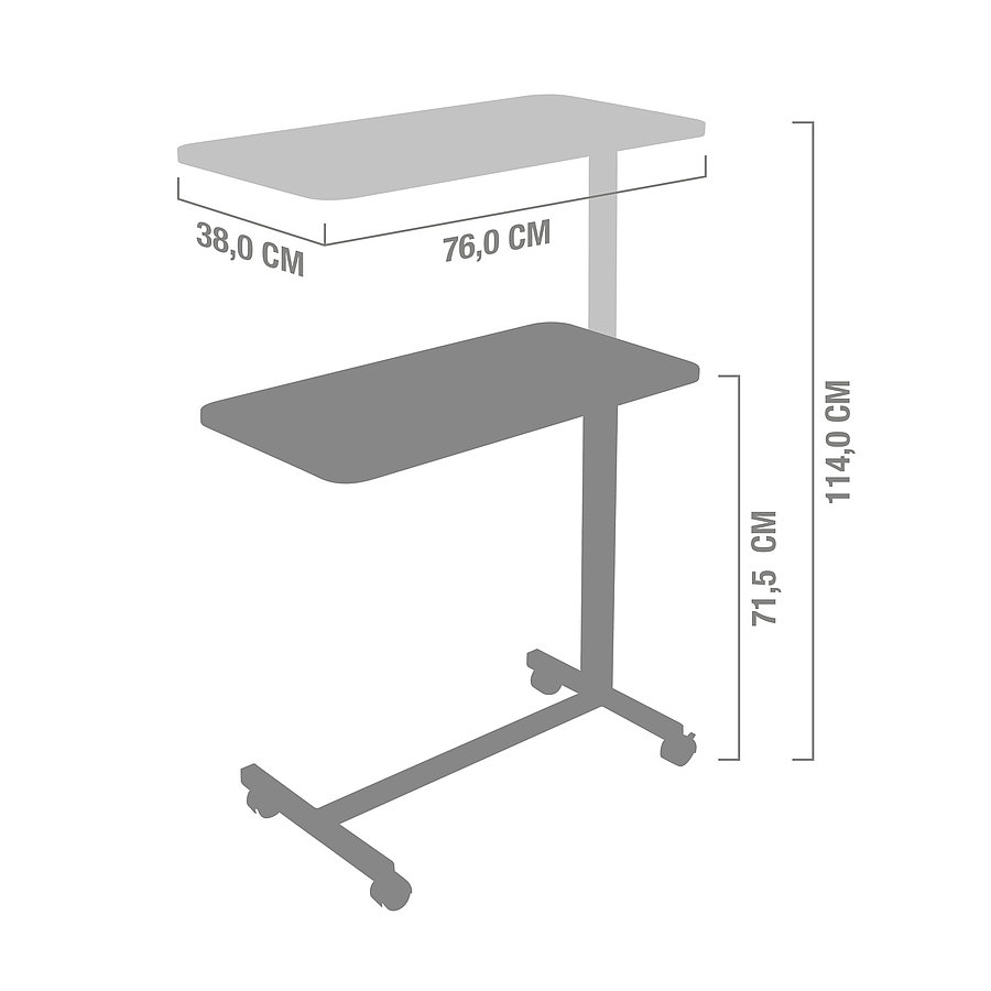 Praktischer Beistelltisch mit 76 x 38cm großer Tischplatte und verchromtem Gestell. Ideal als Pflegetisch für Betten in Krankenhäuser, Pflegeheimen und in der häuslichen Krankenpflege.