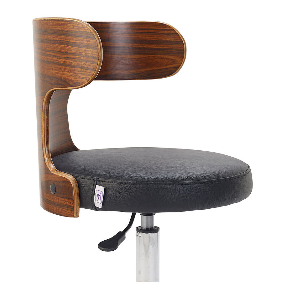 Der Teqler Design-Drehstuhl besticht durch seine Hochwertigkeit. Er ist mit einem Bezug aus echtem Leder und einer geschwungenen Holz-Rückenlehne ausgestattet. Das verchromte Fußgestell unterstreicht seine Wertigkeit.