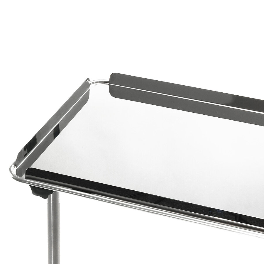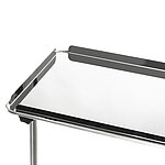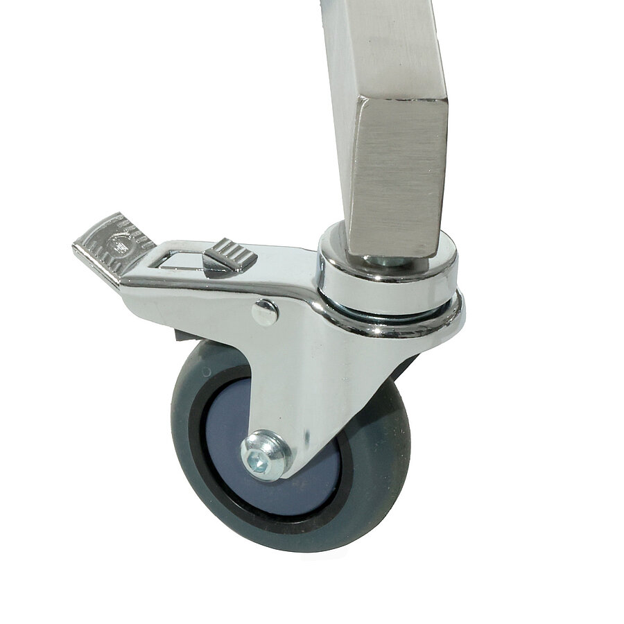 Gefertigt aus hochwertigem und langlebigem Edelstahl, überzeugt der Tisch nicht nur durch seine Stabilität, sondern auch durch seine pflegeleichte Oberfläche, die sich mühelos reinigen lässt. Die vier leichtgängigen Rollen, von denen zwei feststellbar sind, sorgen für maximale Flexibilität und erlauben es, den Tisch sicher am gewünschten Platz zu fixieren.