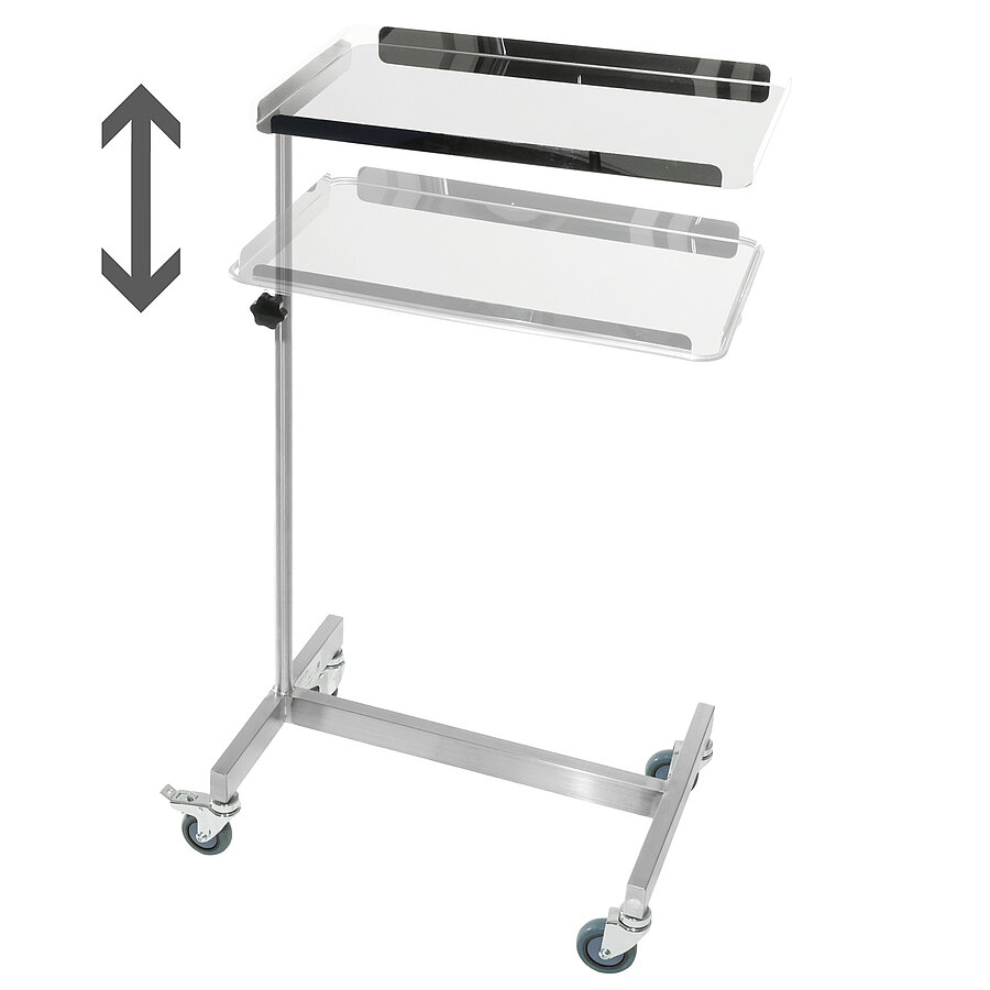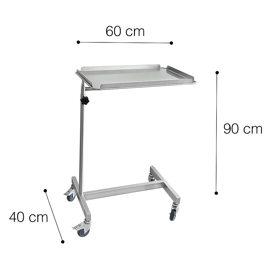 Der höhenverstellbare Teqler Edelstahl-Instrumententisch mit Rollen eignet sich hervorragend für den Einsatz in Arztpraxen, Krankenhäusern und Pflegeheimen. Die glatte Edelstahlfläche ist mit einem umlaufenden Rand versehen, der das Herunterfallen von Instrumenten verhindert. Ein praktischer Drehknopf ermöglicht die stufenlose Höhenverstellung, wodurch ein ergonomisches und komfortables Arbeiten gewährleistet wird.