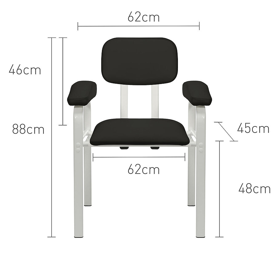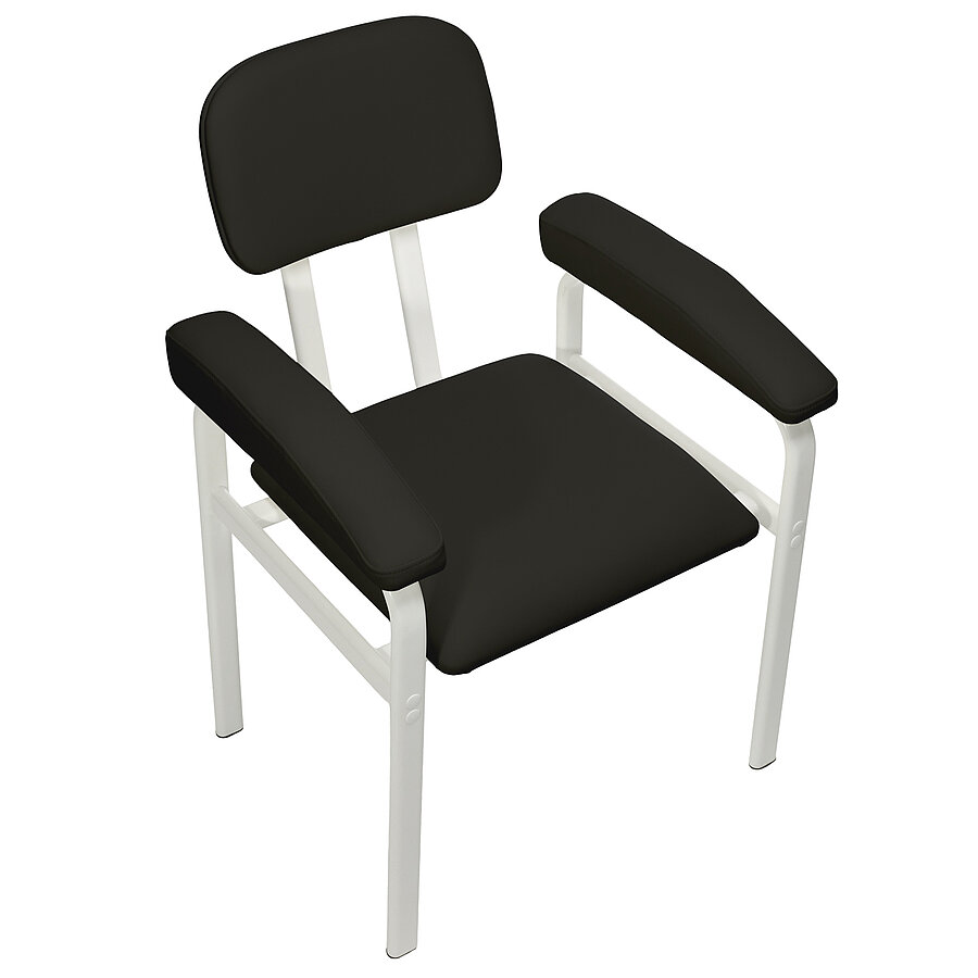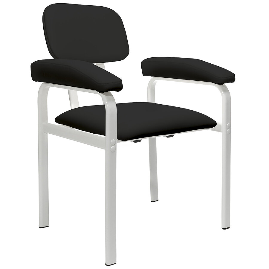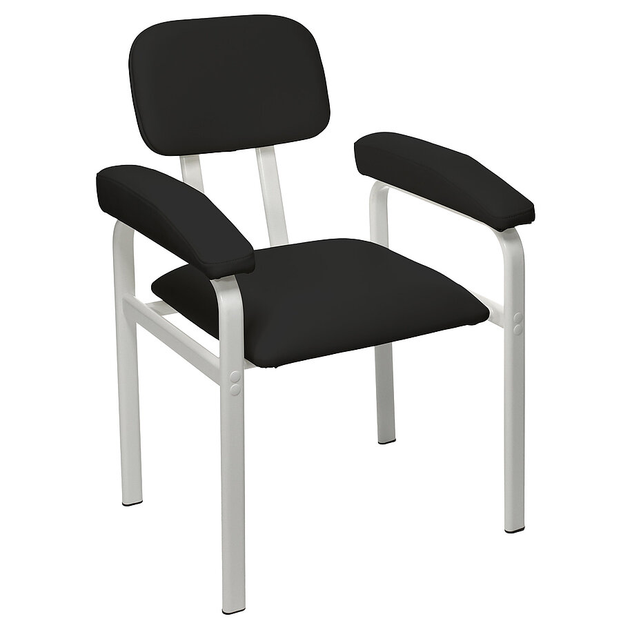 Das Gestell aus Flachovalstahlrohrprofilen bietet eine ausgezeichnete Stabilität und ist bis zu 150 kg belastbar. Mit einer Sitzbreite von 47 cm und einer Sitzhöhe von 50 cm eignet sich der Stuhl auch für größere Patientinnen und Patienten. Die verwendeten Materialien sind beständig gegenüber gängigen Desinfektionsmitteln und lassen sich leicht reinigen, was die Anforderungen an Hygiene und Infektionsschutz im Praxisalltag zuverlässig erfüllt.