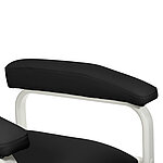 Der Phlebotomie-Stuhl überzeugt durch seine ergonomische Gestaltung und den hohen Patientenkomfort, der insbesondere bei längeren Blutentnahmen oder Infusionen entscheidend ist. Die starke Polsterung von Sitz- und Rückenfläche, kombiniert mit einem widerstandsfähigen Kunstlederbezug, sorgt für ein angenehmes Sitzgefühl und unterstützt eine entspannte Lagerung des Patienten. Die breiten, keilförmigen Armlehnen sind optimal positioniert, um eine anatomisch korrekte und komfortable Armhaltung während der Blutabnahme zu gewährleisten.