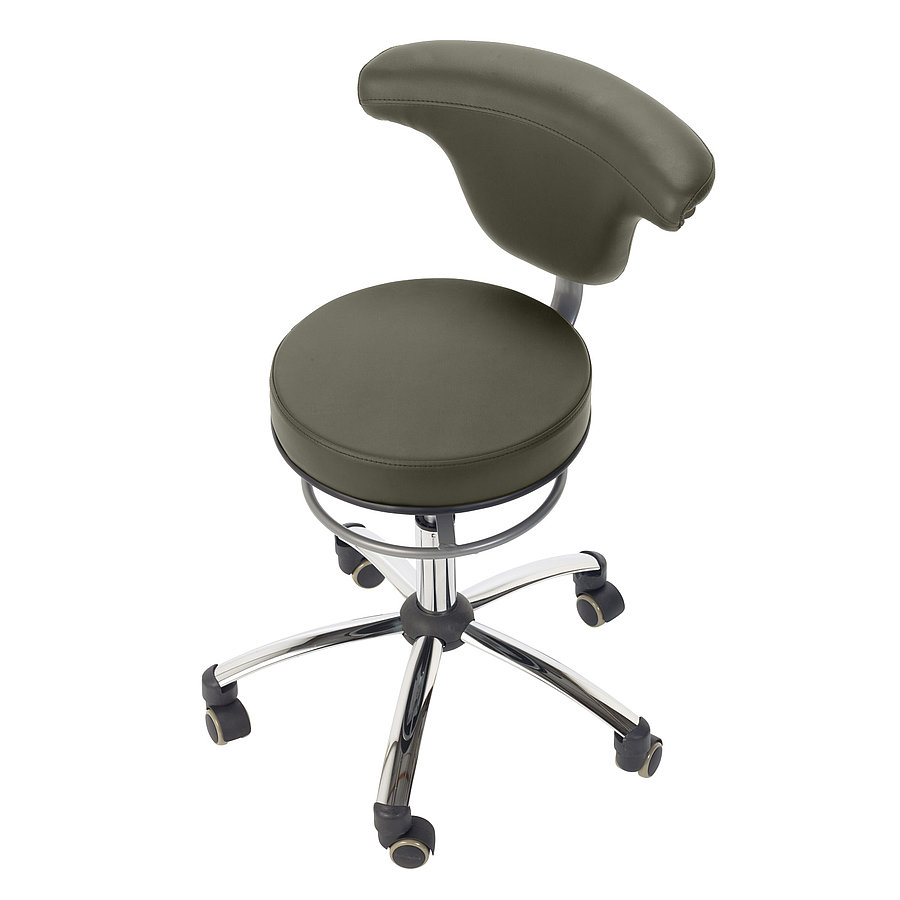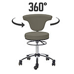 Die Besonderheit des Praxis-Drehstuhls von Teqler ist die um 360° drehbare Rückenlehne, die es erlaubt, viele verschiedene Sitzpositionen einzunehmen. Dadurch wird auch längeres Sitzen auf dem Hocker angenehmer. Erhältlich in verschiedenen Farben.