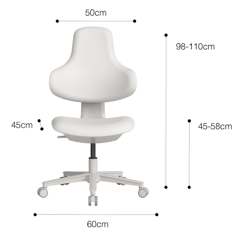 - Sitzhöhe: 45 – 58 cm, stufenlos verstellbar