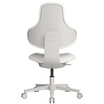 Die stufenlose Sitzhöhenverstellung von 45 bis 58 cm ermöglicht eine flexible Anpassung an unterschiedliche Arbeitsbedingungen oder Teammitglieder. Das stabile Nylon-Fußkreuz mit leichtgängigen PU-Rollen sorgt für sichere Beweglichkeit auf allen Bodenarten, während das robuste Kunststoffgestell in dezentem Grau Korrosion effektiv verhindert.