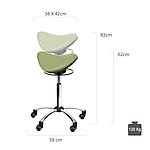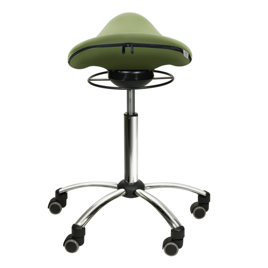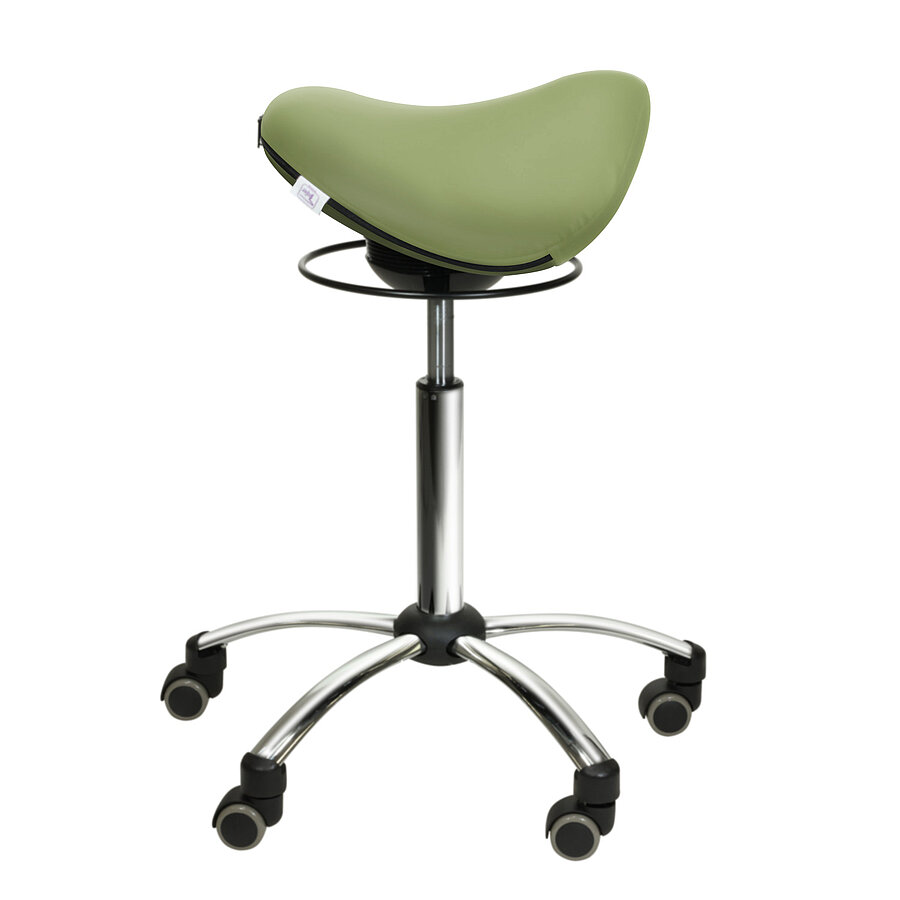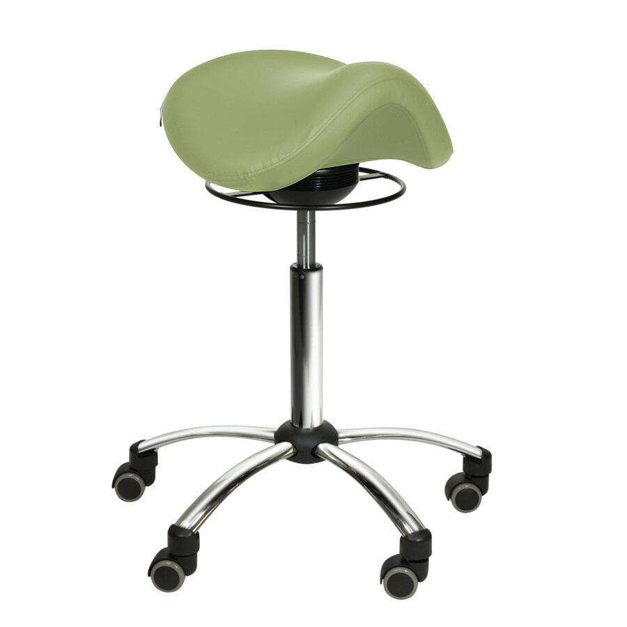 Der Sattelsitz ist federnd gelagert, was aktives Sitzen und eine aufrechte Sitzhaltung fördert. Dies entlastet sowohl das Becken als auch die Wirbelsäule. Mit den leichtgängigen Laufrollen kann der Hocker mühelos im Behandlungszimmer bewegt werden. Der Rollhocker ist in verschiedenen Farben erhältlich.