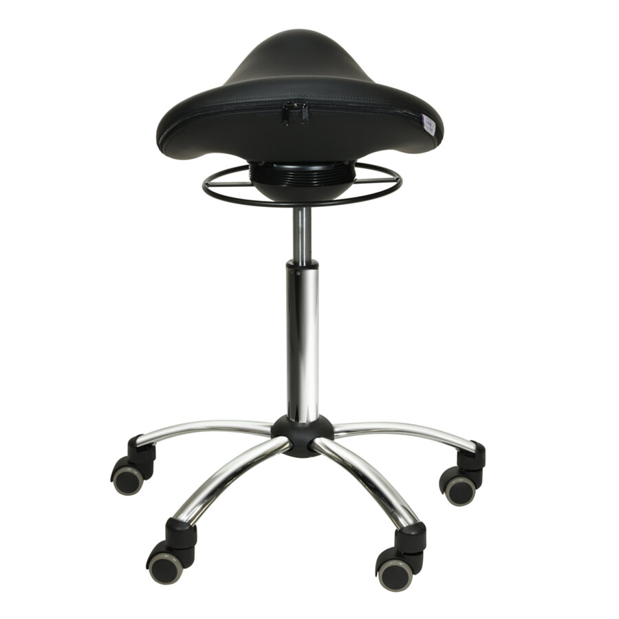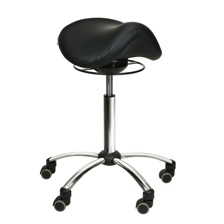 Der Sattelsitz ist federnd gelagert, was aktives Sitzen und eine aufrechte Sitzhaltung fördert. Dies entlastet sowohl das Becken als auch die Wirbelsäule. Mit den leichtgängigen Laufrollen kann der Hocker mühelos im Behandlungszimmer bewegt werden. Der Rollhocker ist in verschiedenen Farben erhältlich.