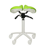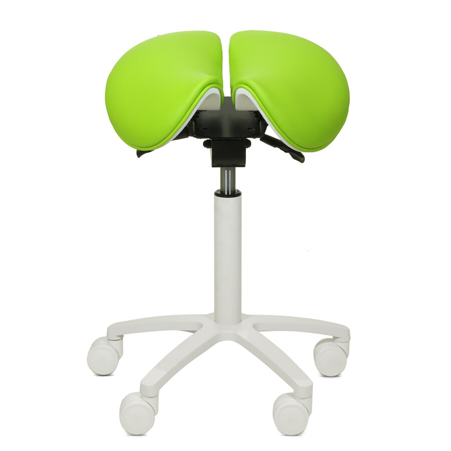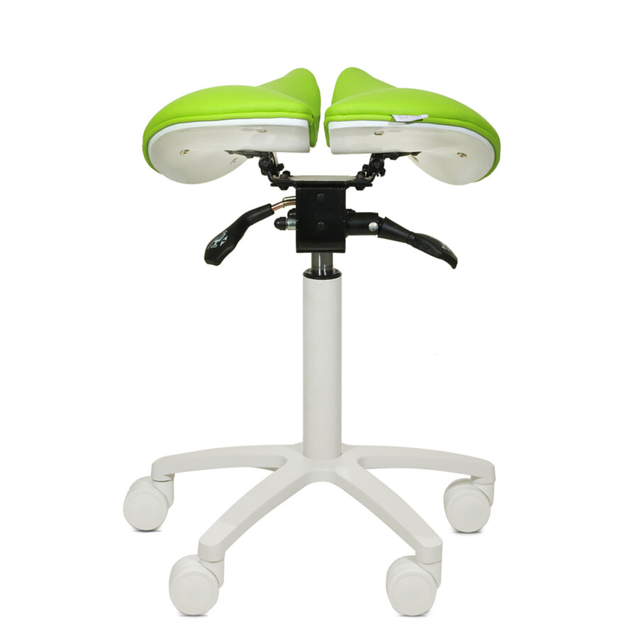 Der Sattelsitzhocker mit geteilter Sitzfläche und innovativem Design ermöglicht ein ergonomisches Arbeiten in einer rückenschonenden Position. Die zweigeteilte Sitzfläche kann flexibel nach vorne und hinten geneigt werden, während die stufenlose Höhenverstellung eine individuelle Anpassung an die persönliche Körpergröße erlaubt.