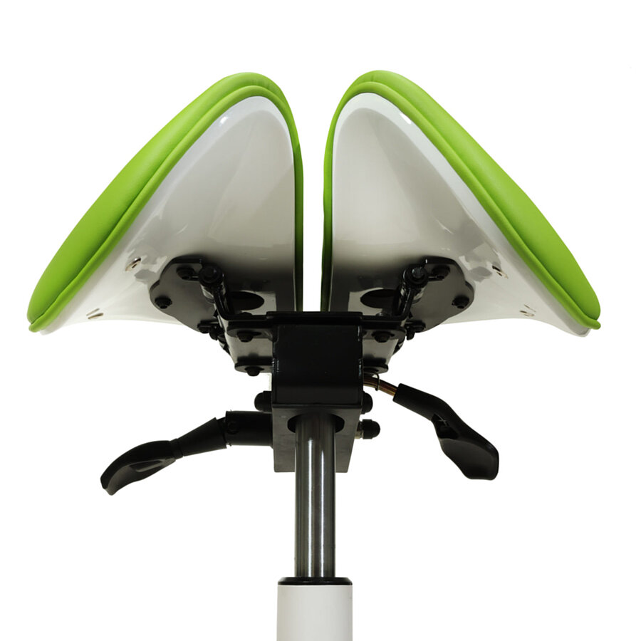 - Sattelsitzhocker mit geteilter Sitzfläche