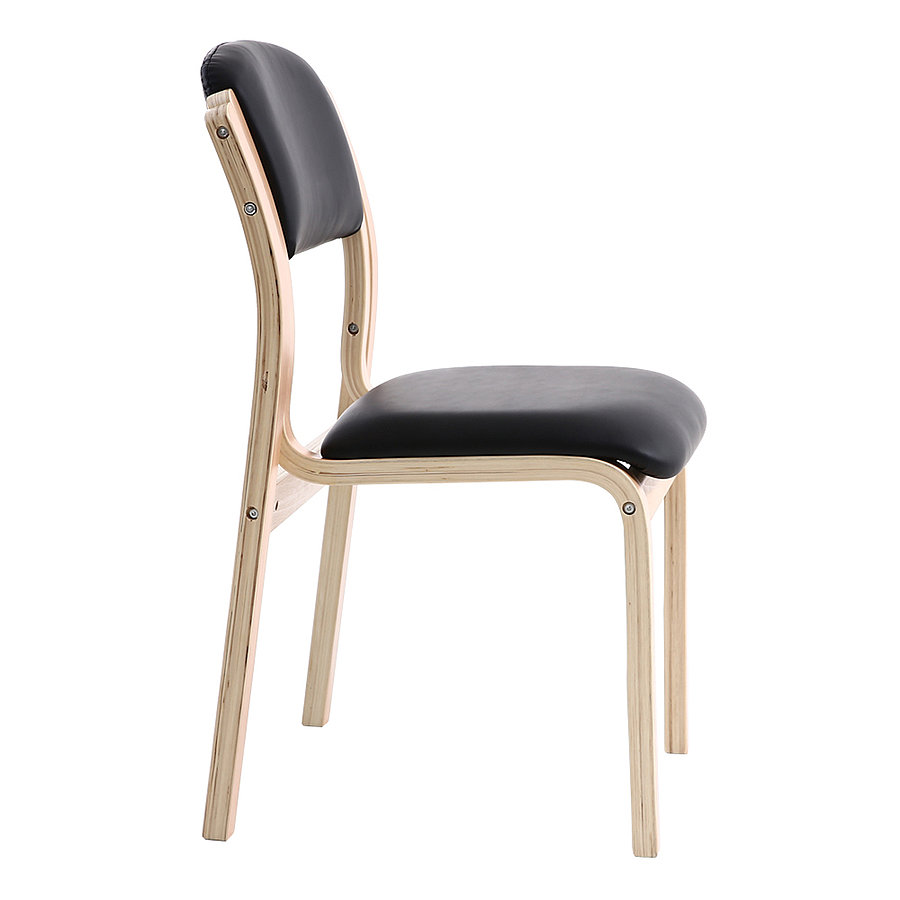 Klassischer Wartezimmerstuhl ohne Armlehnen mit robustem Holzgestell und hygienischem Kunstlederbezug. Erhältlich in verschiedenen Farben.