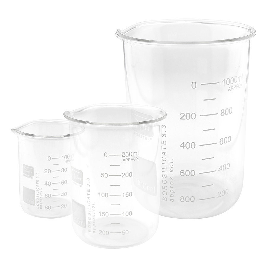 Standfestes Becherglas in niedriger Form mit hoher Beständigkeit gegenüber plötzlichen Temperaturschwankungen, hohen Temperaturen und Chemikalien. Mit gut ablesbarer und detaillierter Skala. Erhältlich in verschiedenen Größen.