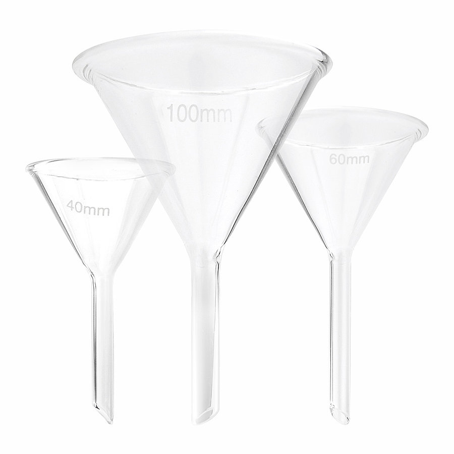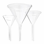Die Teqler Glastrichter dienen dem Um- und Befüllen von Flaschen und Gefäßen mit schmaler Öffnung. Das bei der Herstellung verwendete Borosilikatglas garantiert eine hohe Chemikalien- sowie Temperaturbeständigkeit bis zu 140°C. Eine Verwendung als Filter ist in Zusammenhang mit Filterpapier ebenso möglich.