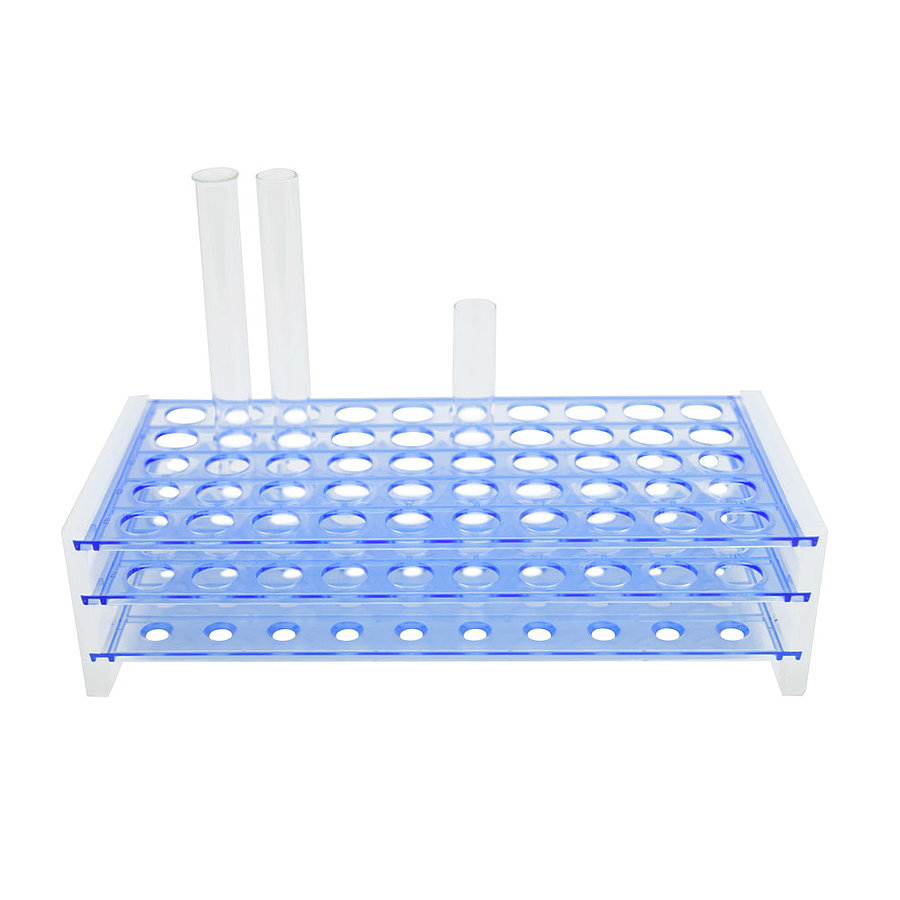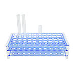 Der 50-Loch Reagenzglasständer aus Kunststoff bietet bis zu 50 Reagenzgläsern einen sicheren Stand. Sowohl die erste Spalte als auch die erste Reihe ist durchnummeriert, wodurch jeder Probe eine eindeutige Position zugeordnet werden kann. Der Reagenzglasständer ist durch seine glatte Oberfläche leicht zu reinigen und sorgt durch seitlich eingelassene Griffmulden für einen sicheren Transport der Proben im Labor.