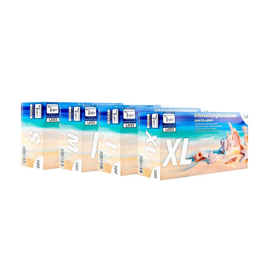 Teqler Latexhandschuhe, puderfrei mit niedrigem Proteingehalt. Nur geringes Risiko für allergische Reaktionen beim Anwender. Elastisch und reißfest, mit guter Passform, die das beidhändige Tragen gewährleistet.