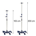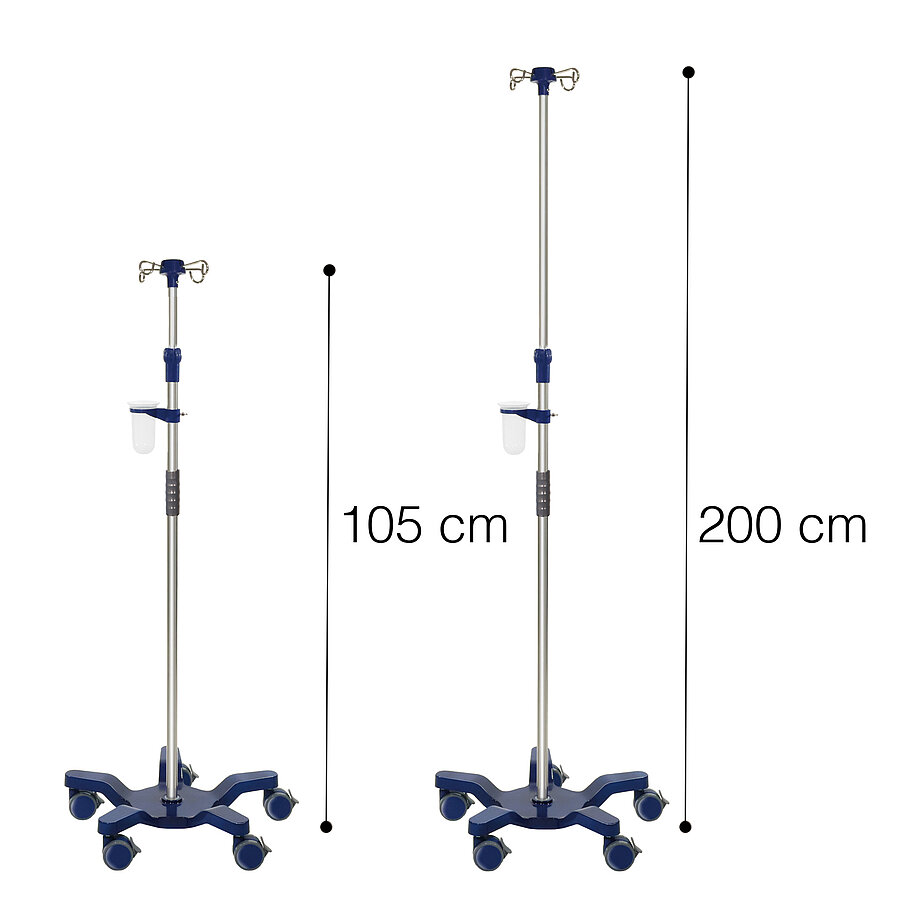Der Premium-Infusionsständer von Teqler überzeugt mit einer flexiblen Höhenverstellung von 105 bis 200 cm, einem stabilen Flaschenkreuz mit vier schlaufenförmig gebogenen Haken und einem besonders standfesten 5-Fuß-Fahrgestell – ideal für den zuverlässigen Einsatz in Praxis und Klinik.