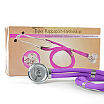 Das Teqler Rappaport-Stethoskop ist ein Doppelkopf-Stethoskop mit Doppelschlauch, das sowohl zur Auskultation bei Erwachsenen als auch bei Kindern verwendet werden kann. Lieferung mit umfangreichem Zubehör (u.a. 2 Ersatz-Membranen und 2 Paar Ohroliven). Auch in der Veterinärmedizin sehr beliebt.