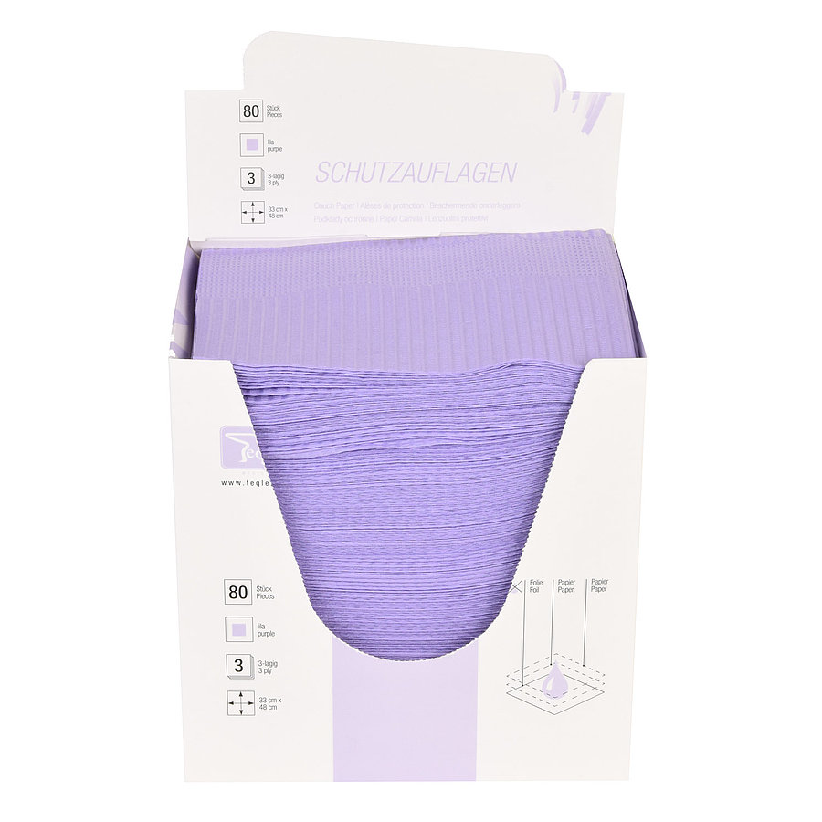 Teqler Schutzunterlagen mit 2 Schichten Papier und einer flüssigkeitsundurchlässigen Folienschicht. Vielseitig verwendbar, z. B. als Auflage für Babywaagen oder als Unterlage bei Blutentnahmen oder Verbandwechseln.