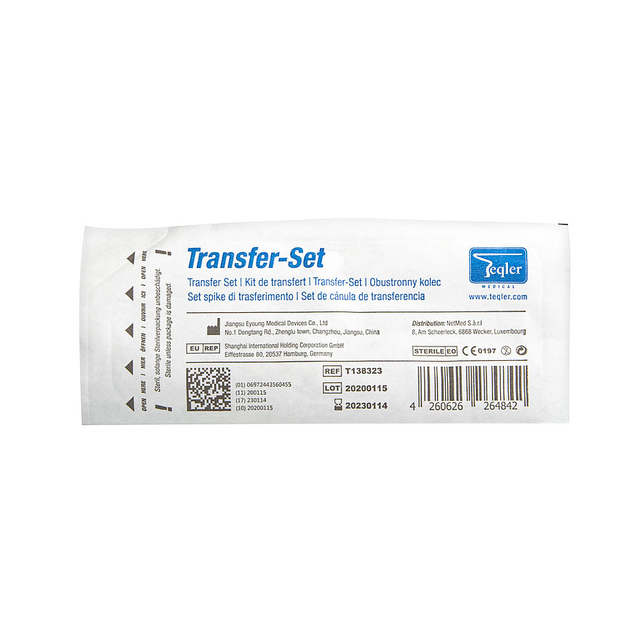 Die Teqler Überleitungskanüle besteht aus 2 scharfen Einstichdornen und einer Griffplatte, die die Handhabung erleichtert. Mit Hilfe des Transfersets können zum Beispiel Lösungen und Arzneimittel gemischt oder Lyophilisate aufgelöst werden.
