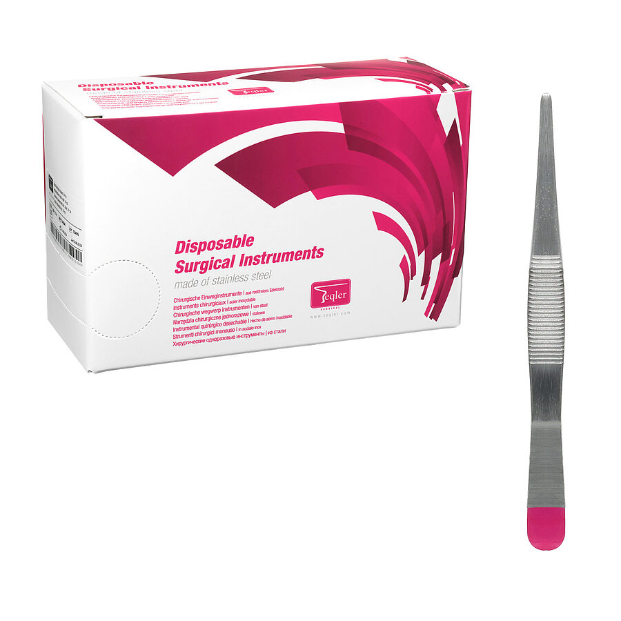 Die anatomische Pinzette (13 cm) ist ein hochwertiges Einmalinstrument aus rostfreiem Edelstahl, dessen gebürstete, matte Oberfläche Reflexionen verhindert und so ein blendfreies Arbeiten ermöglicht. Sie eignet sich ideal zum Greifen und Stabilisieren empfindlicher Gewebestrukturen und trägt durch ihre deutliche Kennzeichnung als Einwegprodukt dazu bei, Verwechslungen mit Mehrweginstrumenten auszuschließen.