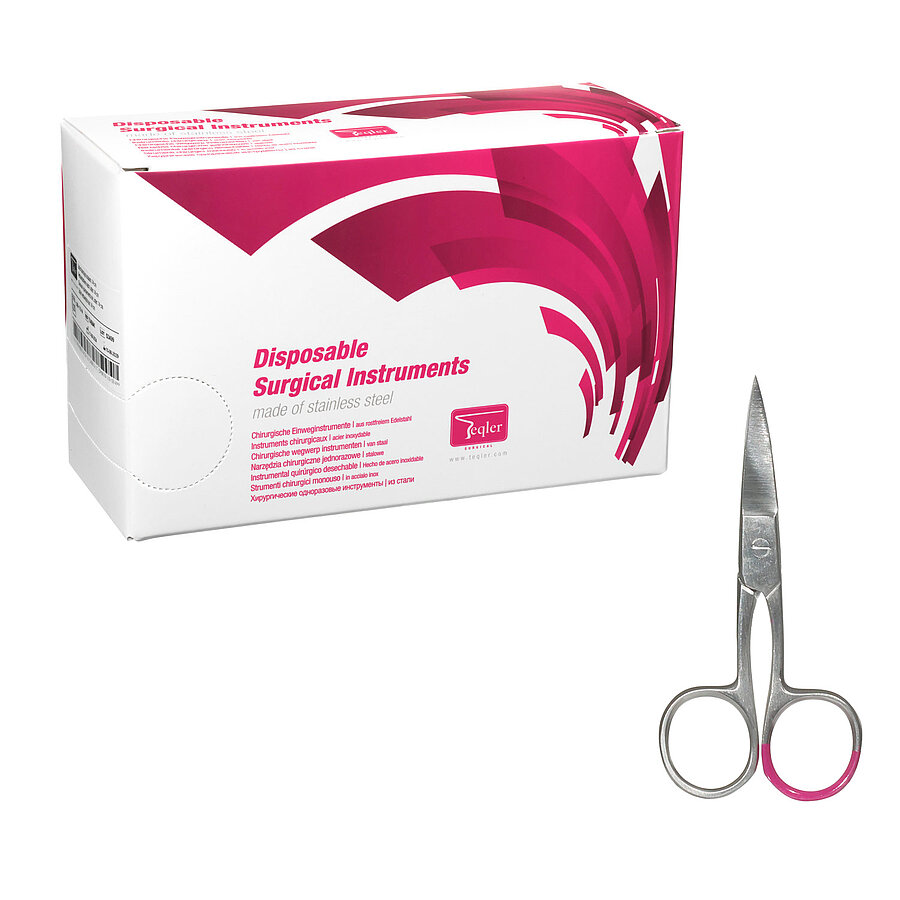 Die Schere ist gebrauchsfertig und daher sofort einsatzbereit. Da die zeit- und kostenaufwändige Aufbereitung entfällt, stellt sie eine besonders zeit- und kostensparende Alternative zu Mehrweginstrumenten dar. In hygienischen Einzelpackungen auf Anreichpappe und mit einem Dokumentationsetikett versehen, gewährleistet sie eine sichere Protokollierung und kann nach Gebrauch einfach im Abwurfbehälter entsorgt werden.