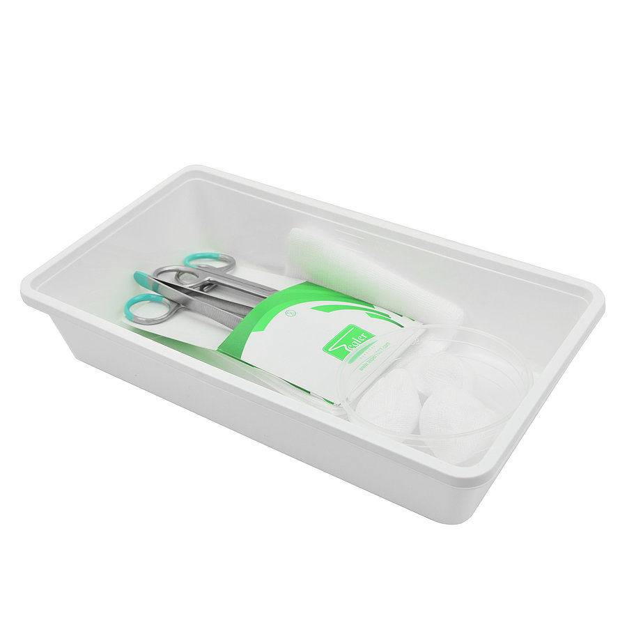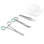 Das steril verpackte Nahtset D von Teqler eignet sich ideal zum hygienischen Wundverschluss mittels chirurgischer Naht. Enthalten sind stabile Einmal-Instrumente aus Metall mit Farbkennzeichnung und Einwegsymbol, Verbandmaterial sowie eine Schutzunterlage, ein Becher und eine Kunststoffschale, die als Ablage der verwendeten Instrumente verwendet werden kann.
