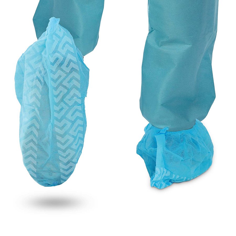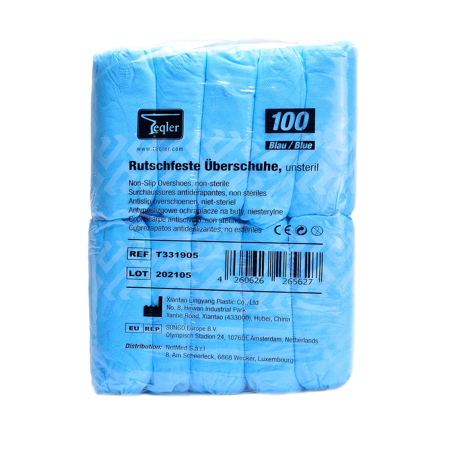Die OP-Überschuhe aus wasserabweisenden Vliesstoff verfügen über eine rutschhemmende Beschichtung an der Unterseite. Der Gummizug sorgt für einen guten Sitz am Fuß und ermöglicht das bequeme An- und Ausziehen über normalen Straßen- oder Arbeitsschuhen. Durch die Länge von 41 cm sind die unsterilen Überzieher auch für größere Füße geeignet.