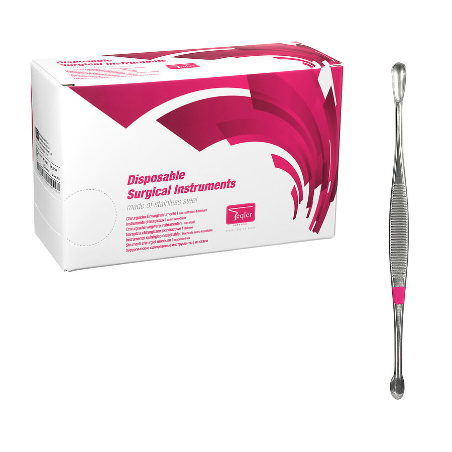 Auf einer praktischen Anreichpappe einzeln verpackt und mit einem Dokumentationsetikett versehen, gewährleistet der scharfe Löffel eine lückenlose Protokollierung und ist sofort einsatzbereit. Der entfallende Aufbereitungsprozess macht das Instrument besonders wirtschaftlich und ressourcenschonend; nach Gebrauch kann es schnell und unkompliziert im Abwurfbehälter entsorgt werden.