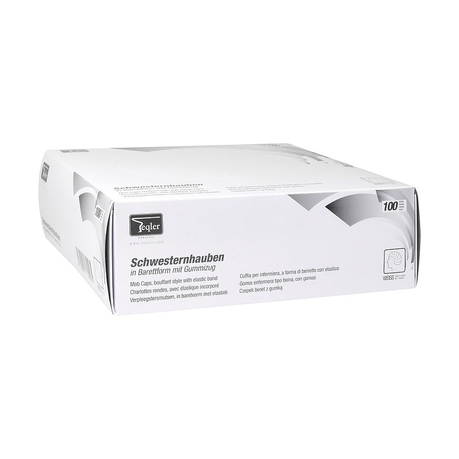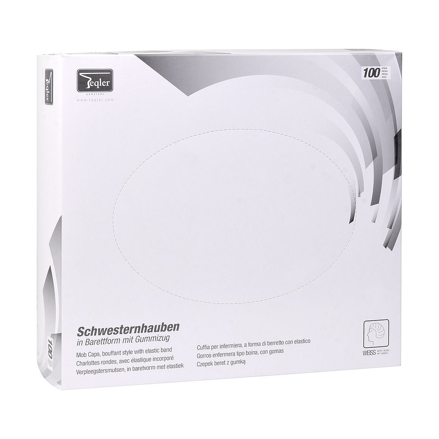 Diese Schwesternhaube von Teqler in Barettform eignet sich sehr gut für Personen mit langen Haaren, da sie besonders viel Platz bietet. Durch Gummizug sehr guter Sitz am Kopf.