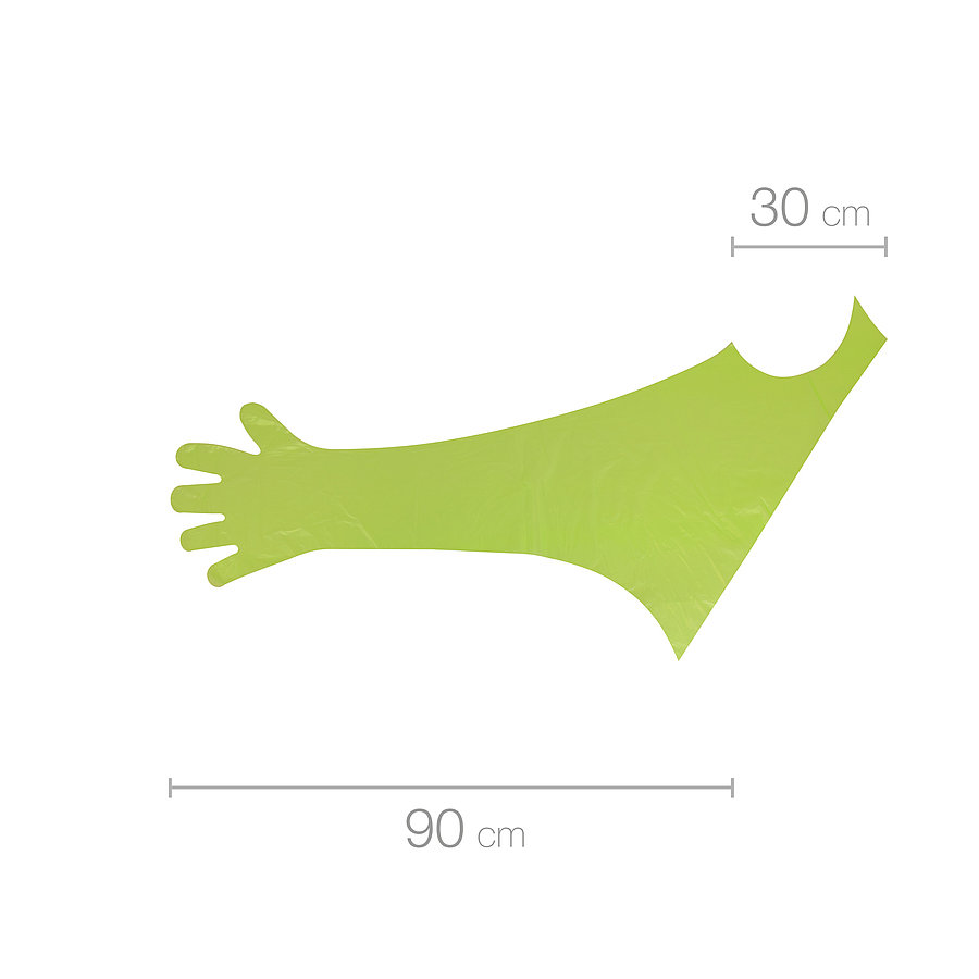 Die Veterinär-Handschuhe mit Schulterschutz eignen sich zur rektalen und vaginalen Untersuchung sowie zur Besamung von Pferden und Rindern. Insbesondere im Zuge der Diagnose von Kolikerkrankungen überzeugen diese überlangen Einweghandschuhe aufgrund ihrer hohen Tastsensibilität, Flüssigkeits- und Reißfestigkeit.Die eingearbeitete Schlaufe mit Schulterschutz lässt sich bequem über den Kopf ziehen und sorgt somit für einen optimalen und rutschfreien Sitz